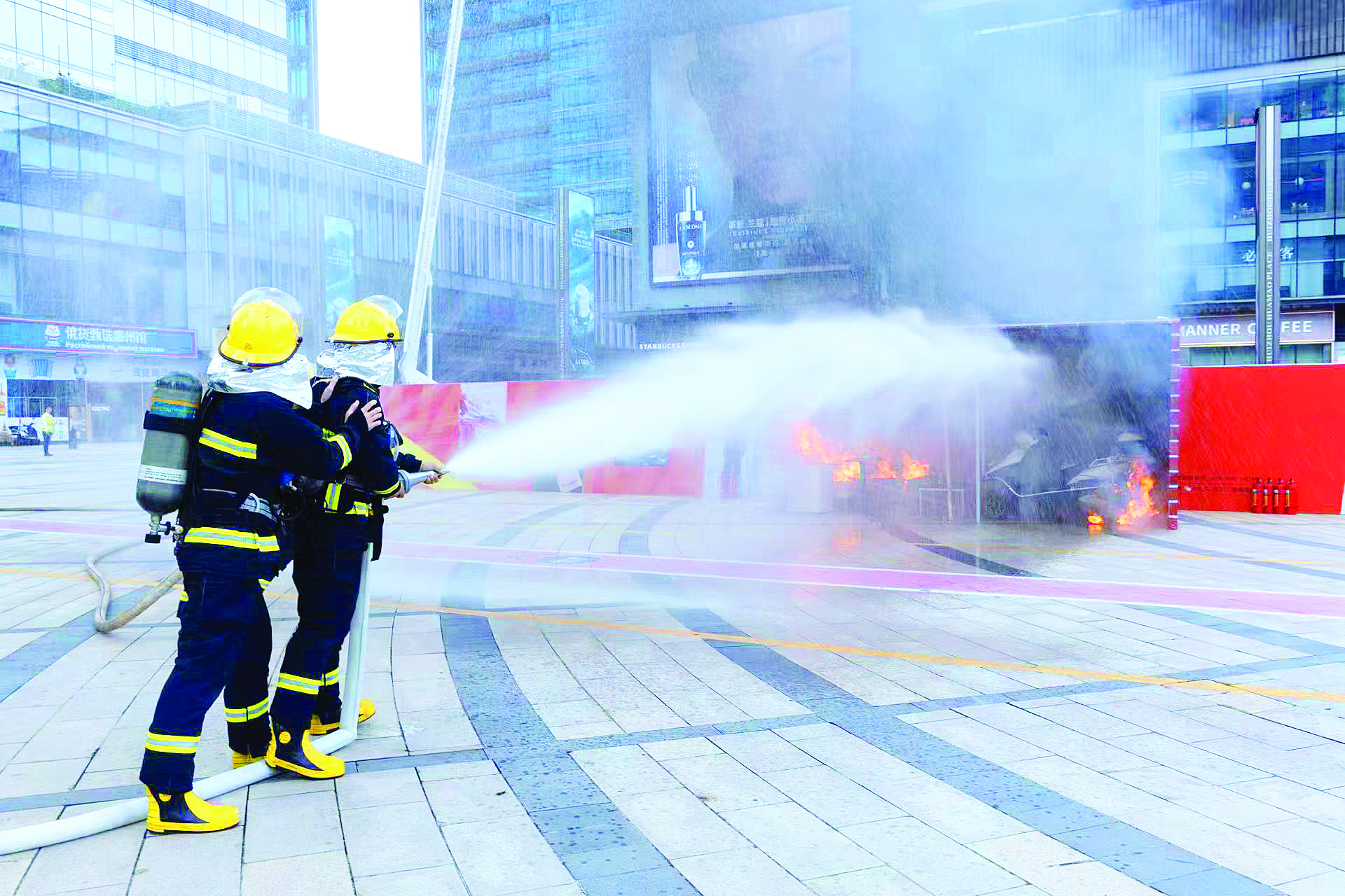 應急演練活動在華貿天地廣場舉行。 惠州日報記者彭紅霞 通訊員鐘穎禎 黃蕾 攝