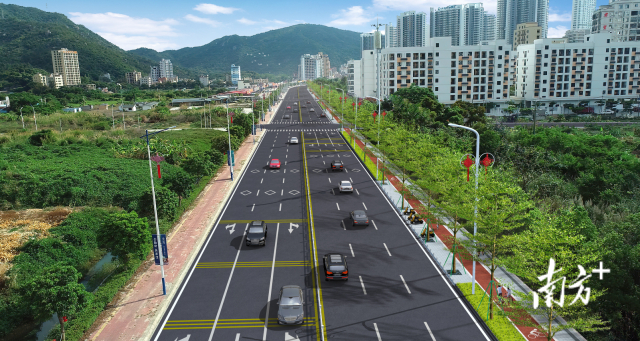 金海灣大道是進入巽寮灣景區的主干道。此前,該道路多處破損嚴重、坑洼、龜裂嚴重,沿線慢行系統、排水系統、交通標志標線等配套設施落后,道路景觀差、通行效率低,存在較大的交通安全隱患,與旅游交通需要不相適應。