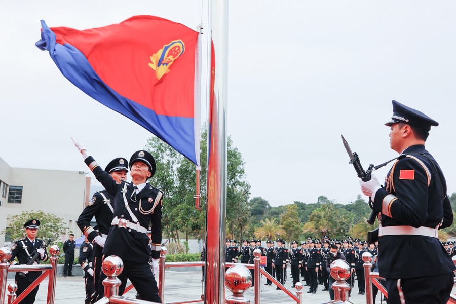惠東公安為慶祝第三個中國人民警察節(jié)舉行升警旗儀式。