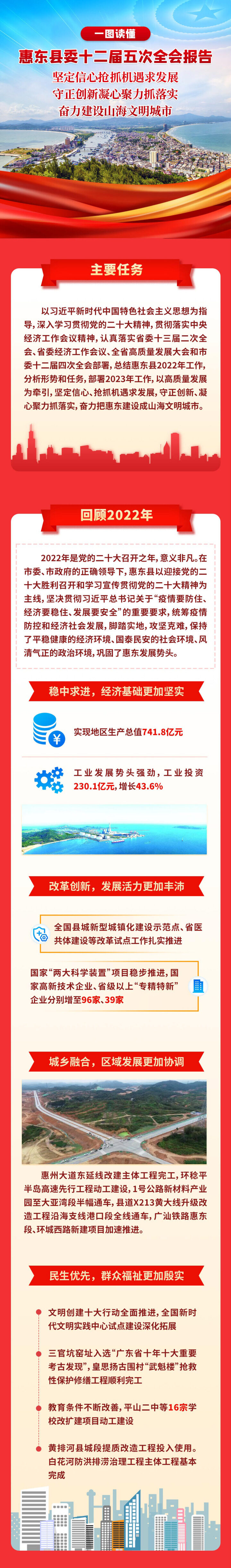 “立足惠東縣情,著眼長遠發展,把握大局大勢,明晰惠東所處的歷史方位,找準中國式現代化的惠東路徑。”1月31日,中國共產黨惠東縣第十二屆委員會第五次全體會議召開,惠東縣委書記鄔澤勤代表縣委常委會向大會作報告。大會總結了去年惠東縣取得的各項成績,部署了今年工作。