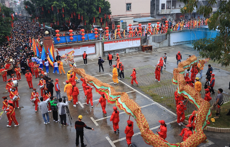 “咚咚,咚咚咚……”2月5日(農(nóng)歷正月十五),惠東縣吉隆鎮(zhèn)隆重舉行舞龍鬧元宵活動(dòng)。舞龍鬧元宵是吉隆客家人的傳統(tǒng)習(xí)俗,每年農(nóng)歷正月十五、十六日兩晚,吉隆群眾都要舞龍祈求新年風(fēng)調(diào)雨順、國(guó)泰民安。每逢元宵節(jié)舞龍時(shí),家家戶戶都準(zhǔn)備“五牲”“五貢”敬祖先,備上豐盛的菜肴,請(qǐng)親朋好友來(lái)熱鬧一番。據(jù)悉,吉隆元宵舞龍已傳承400多年,2015年,入選廣東省第六批非物質(zhì)文化遺產(chǎn)代表作名錄。