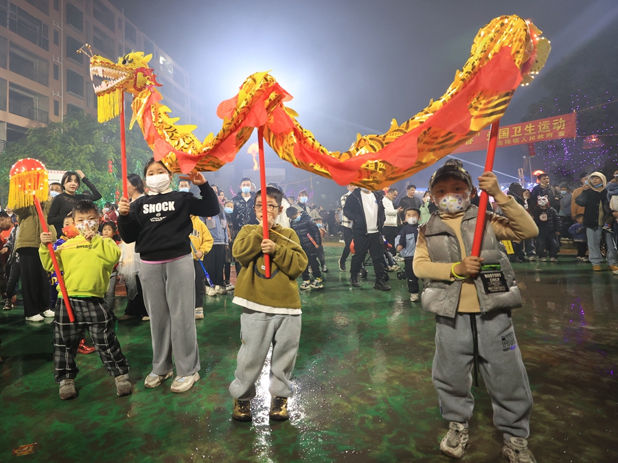 小朋友們也來(lái)舞龍。