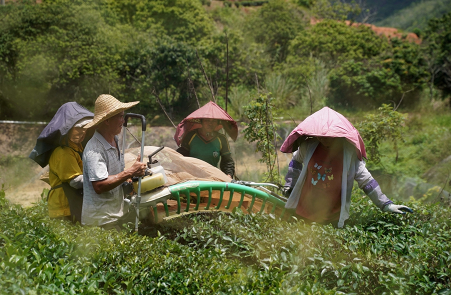 白盆珠鎮(zhèn)擬打造兩個巖茶公園。圖為茶農在采茶。