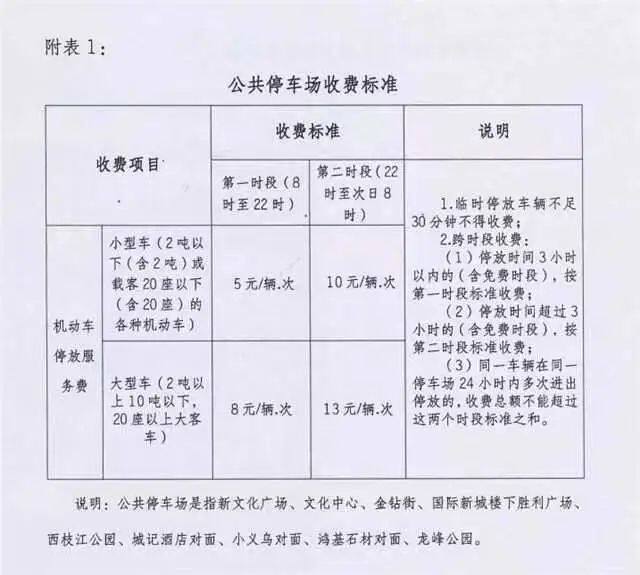 《通告》附帶了公告停車場的收費標準,以小型車或載客20座以下的機動車為例,停車分為兩個時段收費。其中,第一時段(8時至22時)5元/輛/次,第二時段(22時至次日8時)10元/輛/次;臨時停放不足30分鐘不收費,停放3小時以內按第一時段收費,3小時以上按照第二時段收費;同一車輛在24小時內多次進出停車場,收費總額不超過兩個時段之和,即15元。