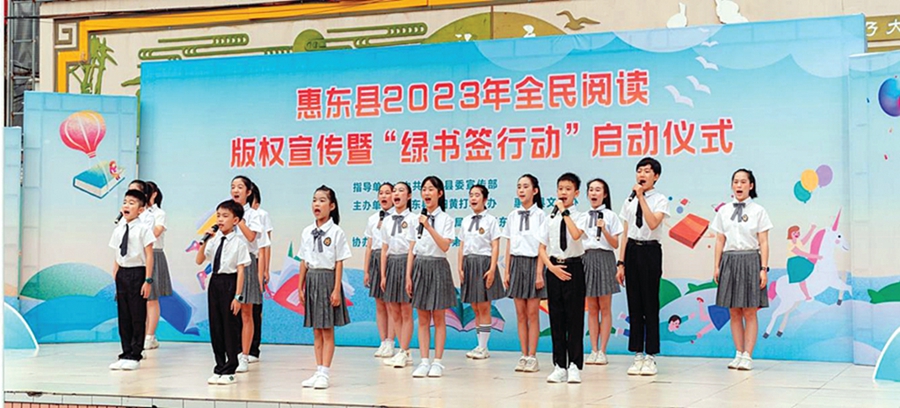 惠州日?qǐng)?bào)訊 (記者洪鵲兒 通訊員葉衍達(dá))4月21日,惠東縣2023年全民閱讀、版權(quán)宣傳暨“綠書簽行動(dòng)”啟動(dòng)儀式在平山第一小學(xué)舉行;輺|縣委宣傳部、縣教育局、縣民政局、縣文明辦、縣版權(quán)局、新華書店等有關(guān)負(fù)責(zé)人以及平山第一小學(xué)700余名師生參加。