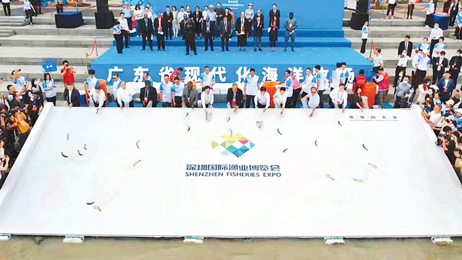 當日上午,在深圳國際漁業博覽會漁業資源增殖放流活動現場,體長平均28厘米的500尾黃唇魚輕盈地擺動尾巴,游向大海。“希望能夠讓黃唇魚更好地適應海域的環境,更好地生存生長。”廣東省鰉鯨海洋生物科技有限公司高級工程師顏闊秋介紹,這批黃唇魚是在惠東縣港口人工繁殖成功的,黃唇魚原有的棲息地在珠江口。