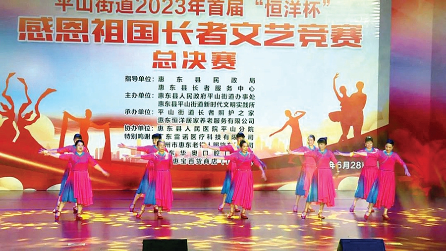 惠州日報訊 (記者藍斐菲 特約通訊員李文聰)為了豐富長者文娛生活,弘揚敬老愛老的中華民族傳統美德,日前,惠東縣平山街道舉行“恒洋杯”感恩祖國長者文藝競賽,老年“達人”們在舞臺上爭相秀才藝,盡展活力風采。