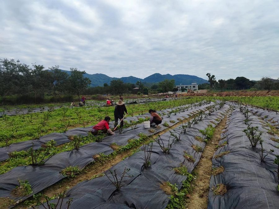 村民在南藥基地除草。 惠州日報(bào)記者藍(lán)斐菲 攝