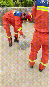 消防員到達現場后,在魚塘邊的水溝下找到了這條大蟒蛇!做好安全防護后,消防員利用捕蛇工具把蛇扯到地上,并將其裝入麻袋,移交給惠東縣野生救助站作下一步安置。