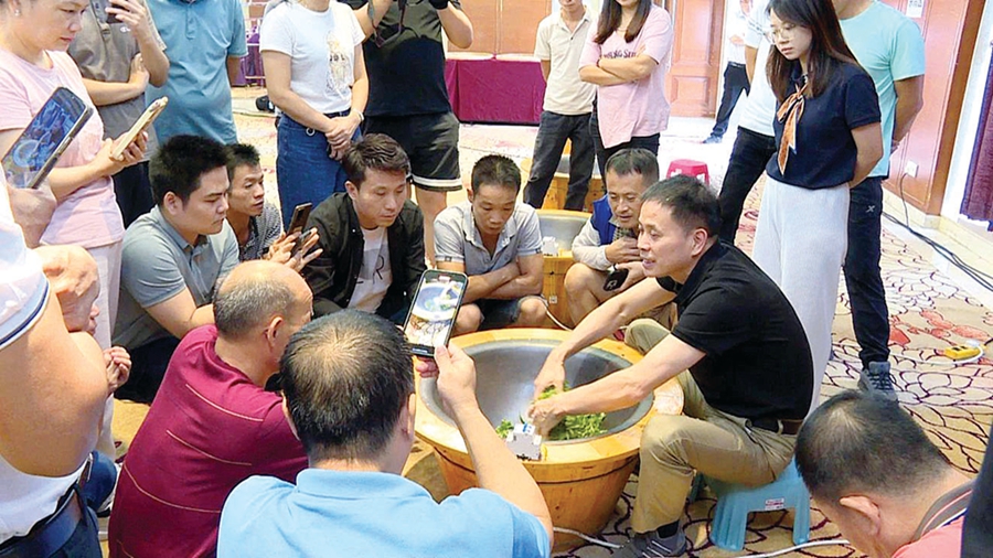 學(xué)員們學(xué)習(xí)炒茶。 惠州日?qǐng)?bào)記者蔡偉健 特約通訊員李文聰 通訊員劉曉林 攝