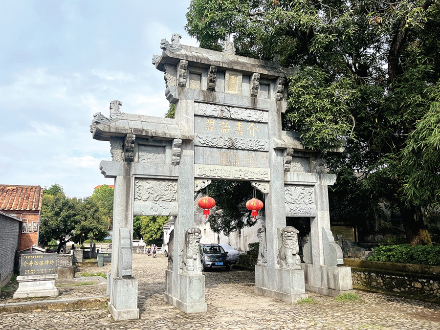皇思揚段是平西古道上遺跡留存最多、修繕意義最大的路段。這是省文保單位“介壽詒謀”石牌坊。惠州日報記者洪鵲兒 通訊員賴悅暉 攝