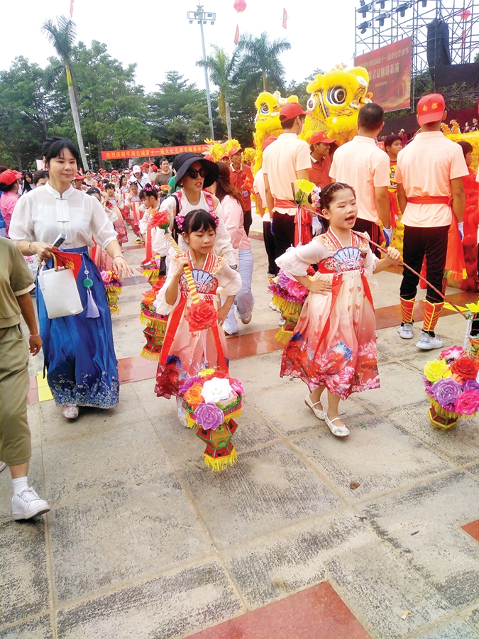 日前,惠東縣平海圩鎮道路兩旁張燈結彩,古城內家家戶戶掛上燈籠和彩旗,一派熱鬧喜慶景象。龍、獅穿梭在古城的大街小巷,鳳舞、舞鯉魚如精靈般活躍在古樸的街道里。“這個鳳舞造型獨特,舞姿好優美。”“快看!快看!那個小孩英歌舞跳得這么好。”……當地舉辦的平海古城第十一屆文化藝術節吸引了眾多客人前往觀賞。