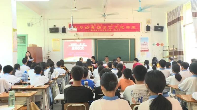 在譚公中學的課堂上,來自惠東縣高中音樂名師工作室的主講老師與學生共同賞析經典詩歌,讓學生們感受到朗誦的魅力。