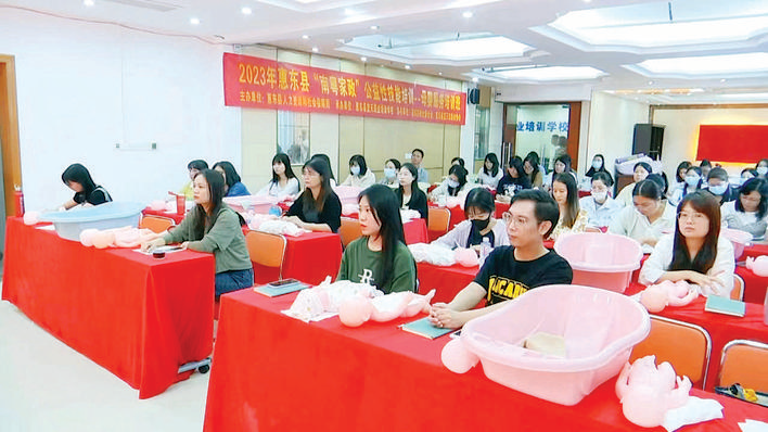 惠州日報訊 (記者賴金朗 特約通訊員李文聰 通訊員馬觀英 陳文立)日前,惠東縣組織開展2023年“南粵家政”公益性技能培訓,其中首輪母嬰服務培訓班在藍天職業培訓學校開班。