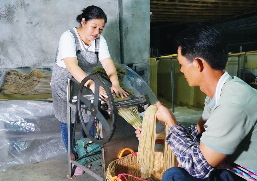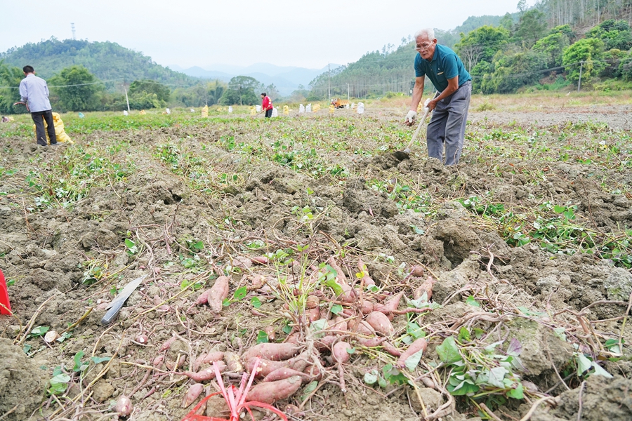 仲冬時節,村民們忙著采收番薯,并將收回來的番薯制成薯粉絲。經過沖洗、碾磨、揉粉、沉淀、蒸熟、切割、晾曬等10多道工序后,番薯被制成薯粉絲,成為家家戶戶春節年貨必備之品。