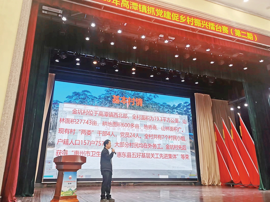 惠州日報訊 (記者洪鵲兒 特約通訊員謝長波 通訊員曹慧璇)黨建引領風帆勁,鄉村振興正當時。近日,惠東縣高潭鎮在高潭革命老區紀念堂舉辦抓黨建促鄉村振興擂臺賽(第二期)。經過緊張而又激烈的角逐,評委組圍繞創新性、實效性、推廣性、展示水平4個方面評出了各村成績。最終,大星村、金坑村、黃洲村獲得此次擂臺賽前三名。
