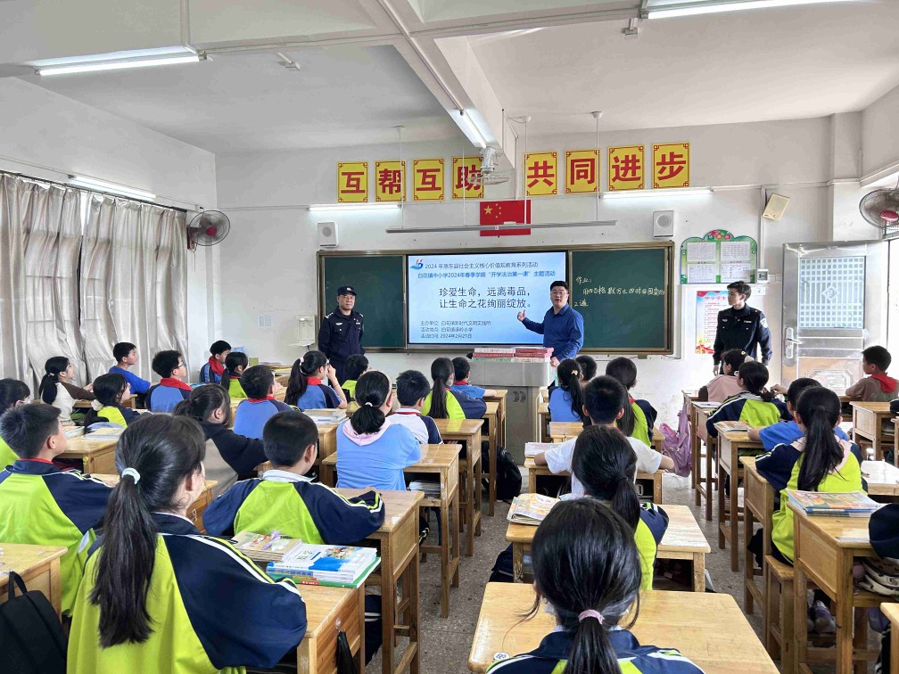 惠州日報訊 (記者蔡偉健 通訊員郭曉鋒)為扎實推進中小學生法治和禁毒宣傳教育工作,強化青少年知法學法守法意識,營造良好校園環境,近日,惠東縣白花鎮政府聯合惠東縣公安局白花派出所、太陽坳派出所,邀請廣東卓凡(惠東)律師事務所專業律師,為全鎮13所中小學開展2024年春季學期“開學第一課”主題活動。