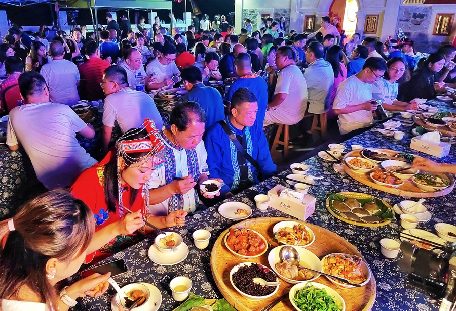 青山對歌情深深,畬音絲竹樂滿天。4月11日,在悠揚的畬歌環繞中,惠東縣首屆“三月三”畬族文化節在九龍峰旅游區角峰畬族村民小組啟幕。敬攔門酒、跳竹竿舞、品長桌宴、舞篝火歌……此次文化節,身著畬族傳統服飾的村民、來自各地的畬族同胞以及各民族朋友同聚一堂,共同慶祝這個具有深厚歷史和文化底蘊的節日。