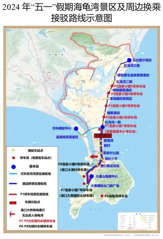 2024年4月11日惠東縣發(fā)布了《關(guān)于2024年“五一”假期海龜灣景區(qū)及周邊區(qū)域?qū)嵤┡R時(shí)交通管理和配套服務(wù)措施的通告》。為保障配套服務(wù)措施暢順運(yùn)行,決定在4月27日試運(yùn)行。現(xiàn)將有關(guān)事項(xiàng)通告如下: