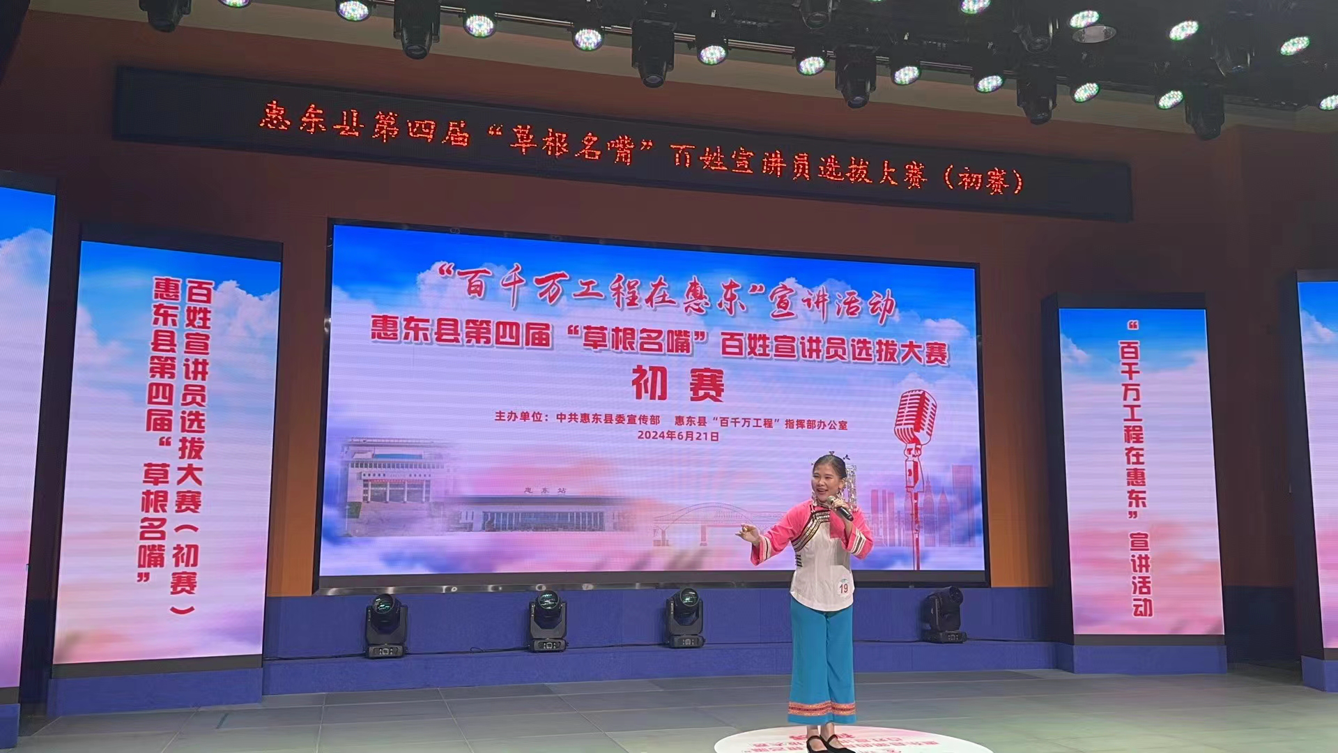 據(jù)了解,“草根名嘴”百姓宣講員選拔大賽是惠東縣一項(xiàng)重要的文化活動(dòng),旨在發(fā)掘和培養(yǎng)具有地方特色的宣講人才,推動(dòng)文化事業(yè)繁榮發(fā)展。活動(dòng)從各行業(yè)各部門、鄉(xiāng)鎮(zhèn)宣傳委員、村(社區(qū))干部、中小學(xué)教師、勞動(dòng)模范等群體中選拔優(yōu)秀人才,宣講隊(duì)成員從日常生活中汲取養(yǎng)分,從身邊典型中尋找能量,結(jié)合紅色革命、鄉(xiāng)村振興、愛崗敬業(yè)、好人好事等,向廣大基層干部群眾講述一個(gè)個(gè)追夢(mèng)圓夢(mèng)的故事。