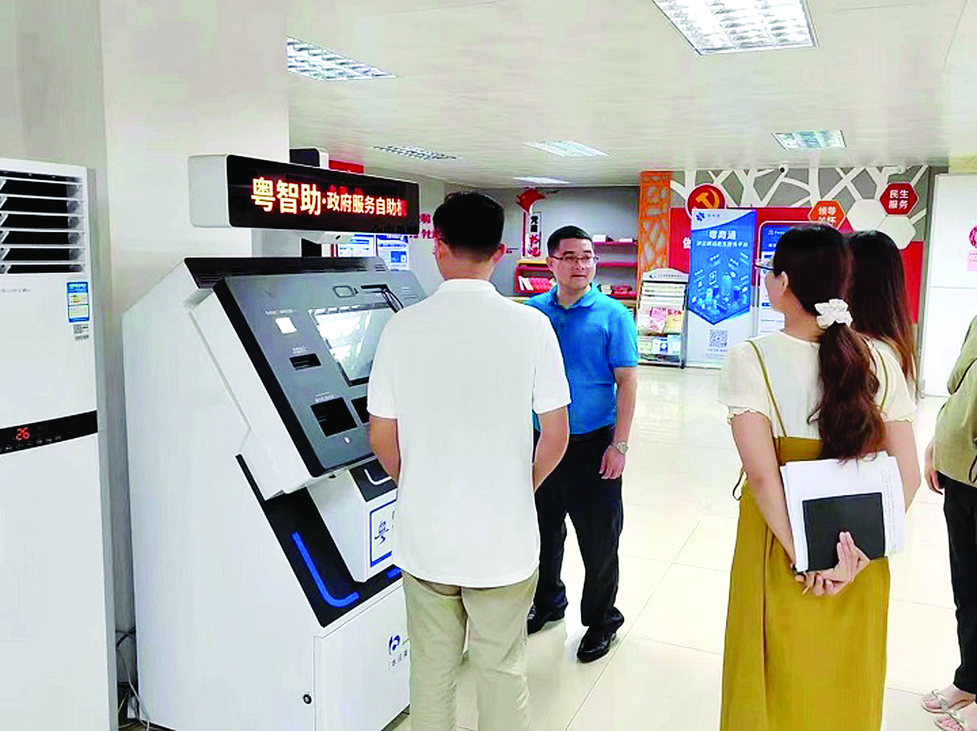 調研組一行與各鎮街村干部代表座談交流,深入了解“粵智助”政府服務自助機和“灣區通辦”政務服務終端運行管理情況。會上,各鎮村干部圍繞設備應用推廣、日常管理及運行維護等工作落實情況及問題展開交流,積極反饋設備常見問題和群眾政務服務需求,為提升設備服務能力,持續深化基層一體機管理應用提出相關建議。