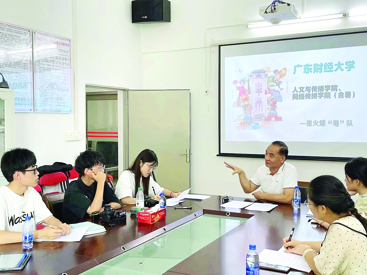 廣東財經大學星火燎“粵”隊成員采訪原平海文化站站長蔡景。