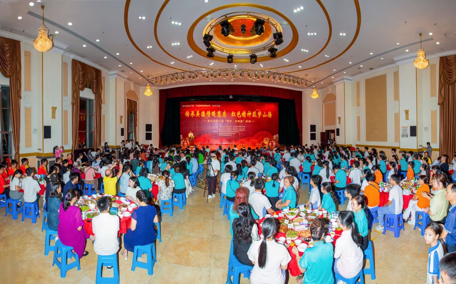活動中,晚輩與長輩們圍桌而坐,一同傾聽紅色故事,欣賞紅色歌曲,分享品嘗美味佳肴,重溫崢嶸歲月,傳承紅色基因,F場氛圍溫馨而熱烈,晚輩向身邊的長輩們行敬茶禮、夾菜禮,表達了對長輩的尊敬和感激。