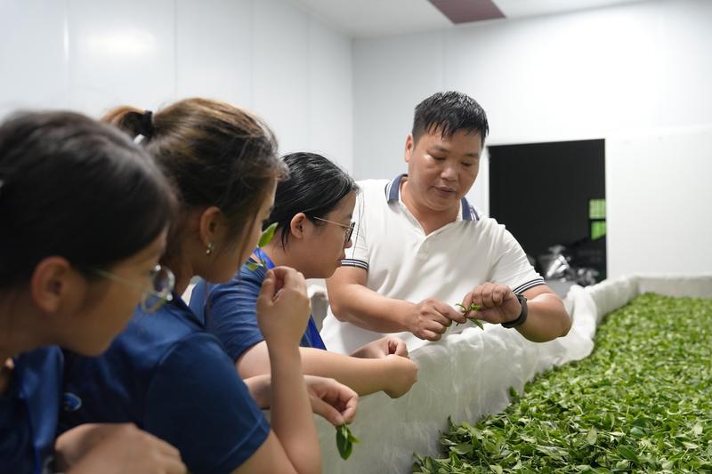 團隊成員體驗茶葉加工。 惠州日報記者洪鵲兒 通訊員王羽 攝