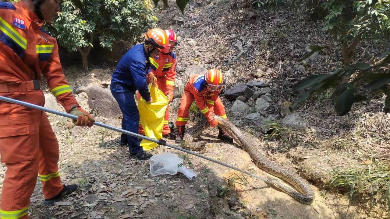 隨后將蟒蛇帶到遠離村民的野外山林進行放生