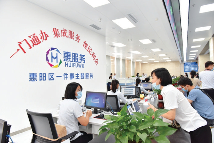企業工作人員在惠陽區政務服務大廳咨詢業務。 惠州日報記者許文昌 通訊員文學群 攝