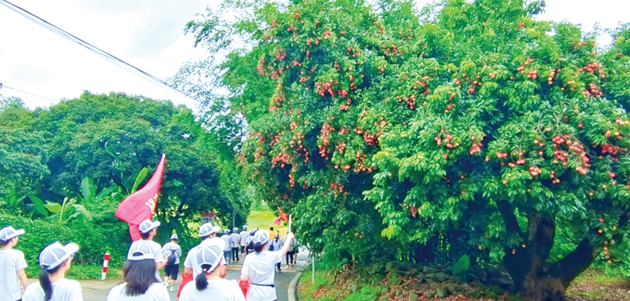 眼下正是荔枝豐收季,路邊一棵棵荔枝樹上掛滿了紅果子,著實惹眼。“好靚啊,快給我拍照。”大家結(jié)伴而行,有說有笑,拍照留念,并在徒步中開展環(huán)保、反詐、安全等知識宣傳活動。