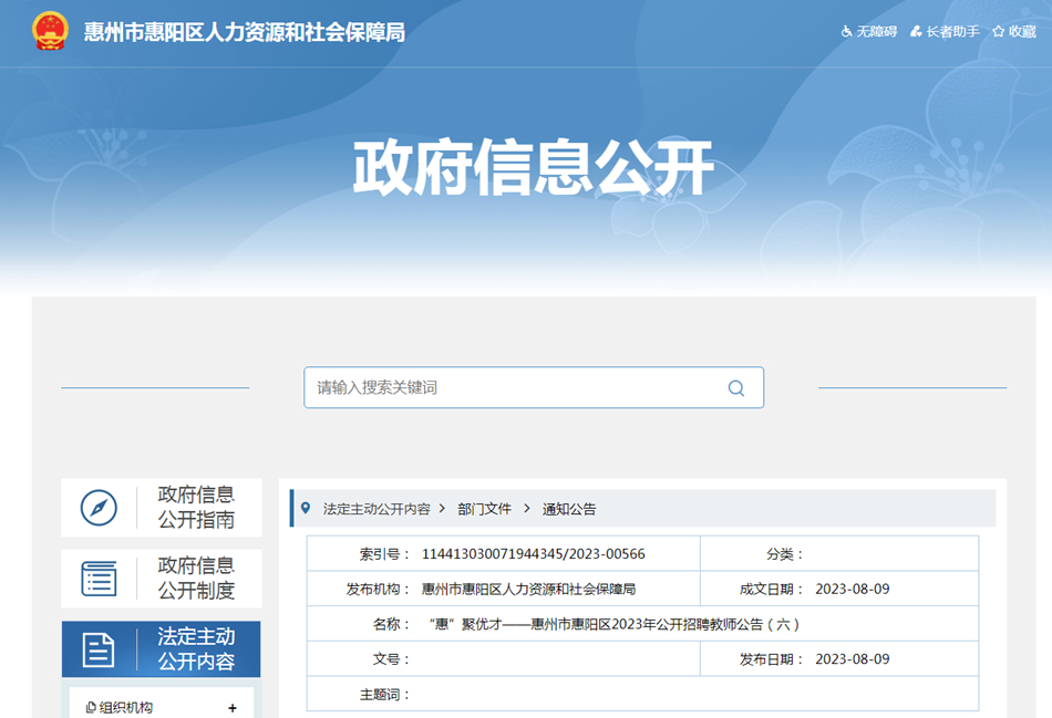“惠”聚優才——惠州市惠陽區2023年公開招聘教師公告(六)