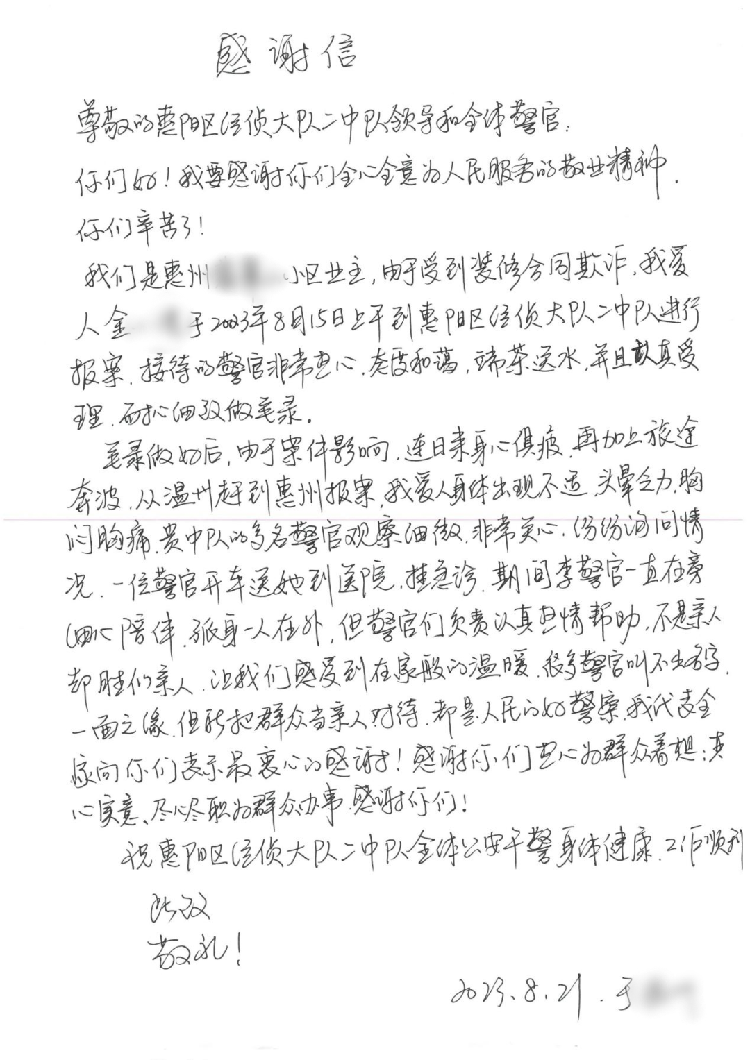 字里行間滿是對辦案民警