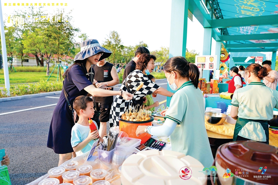 惠陽體育文化公園內同樣熱鬧非凡,一場美食嘉年華正在熱鬧舉行。當地30家具有代表性的本地美食商家參與其中,惠陽老字號企業美食、飲品小吃、農特產品……吸引了眾多游客品嘗體驗。