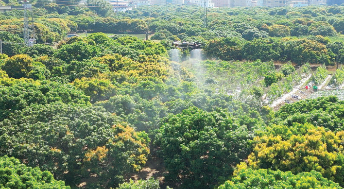 利用無人機給荔枝樹打藥省時省力。 惠州日報記者李芳娟 通訊員張偉鋒 攝