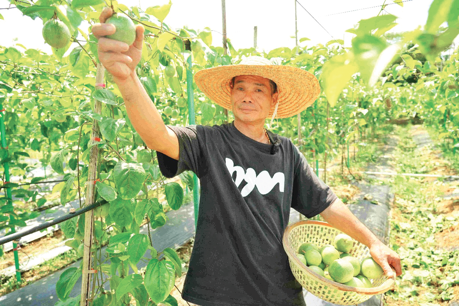 盧振雄在采摘百香果。 惠州日報記者許文昌 攝