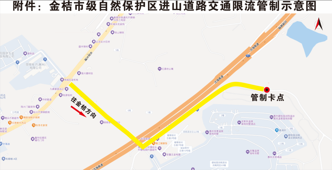 附:金桔市級自然保護區進山道路交通限流管制示意圖