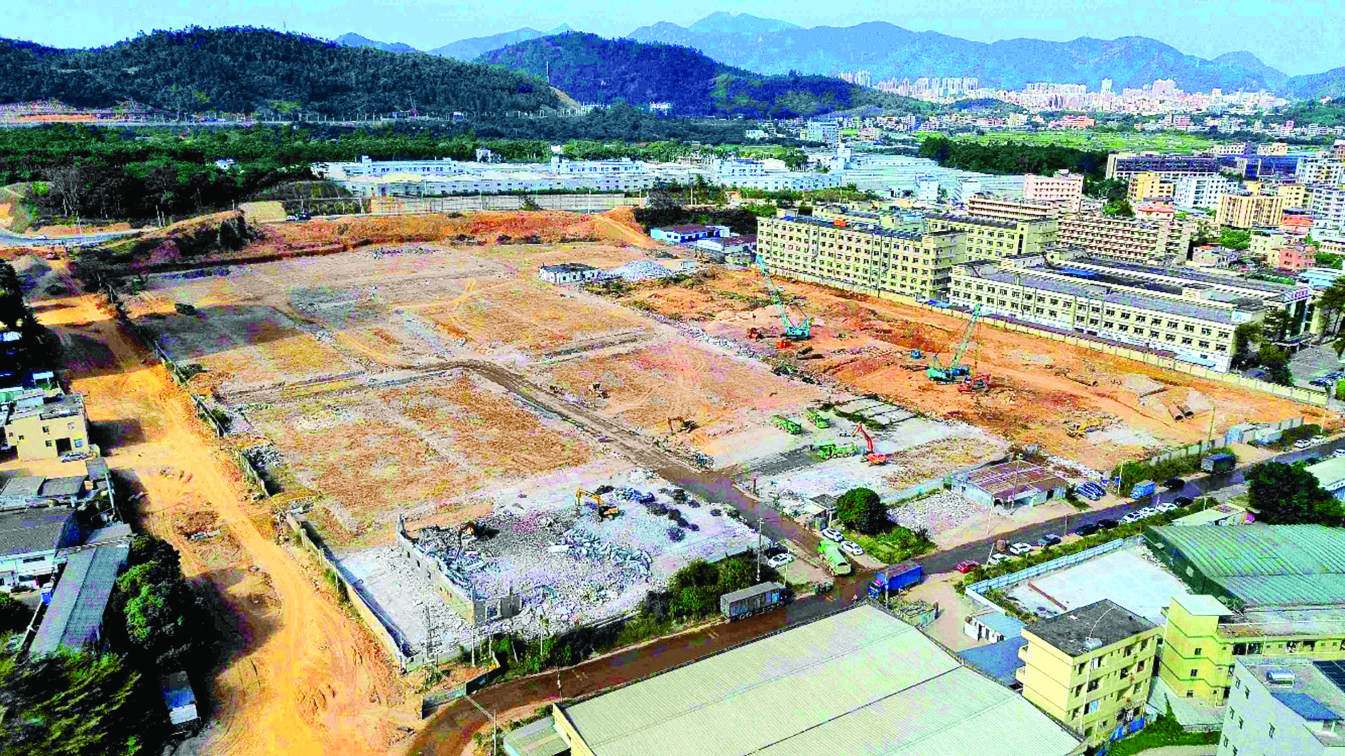 初冬時節,走進惠陽區新圩鎮長布村,高聳的廠房、繁忙的生產線、穿梭的物流車輛,在這個臨深區域構成了一幅繁忙有序的生產景象。在深莞惠紅色干線長布村段,一塊方方正正的地塊就是“長布一號”地塊,幾臺挖掘機正在拆除鐵皮廠房,近期將全部完成清拆。