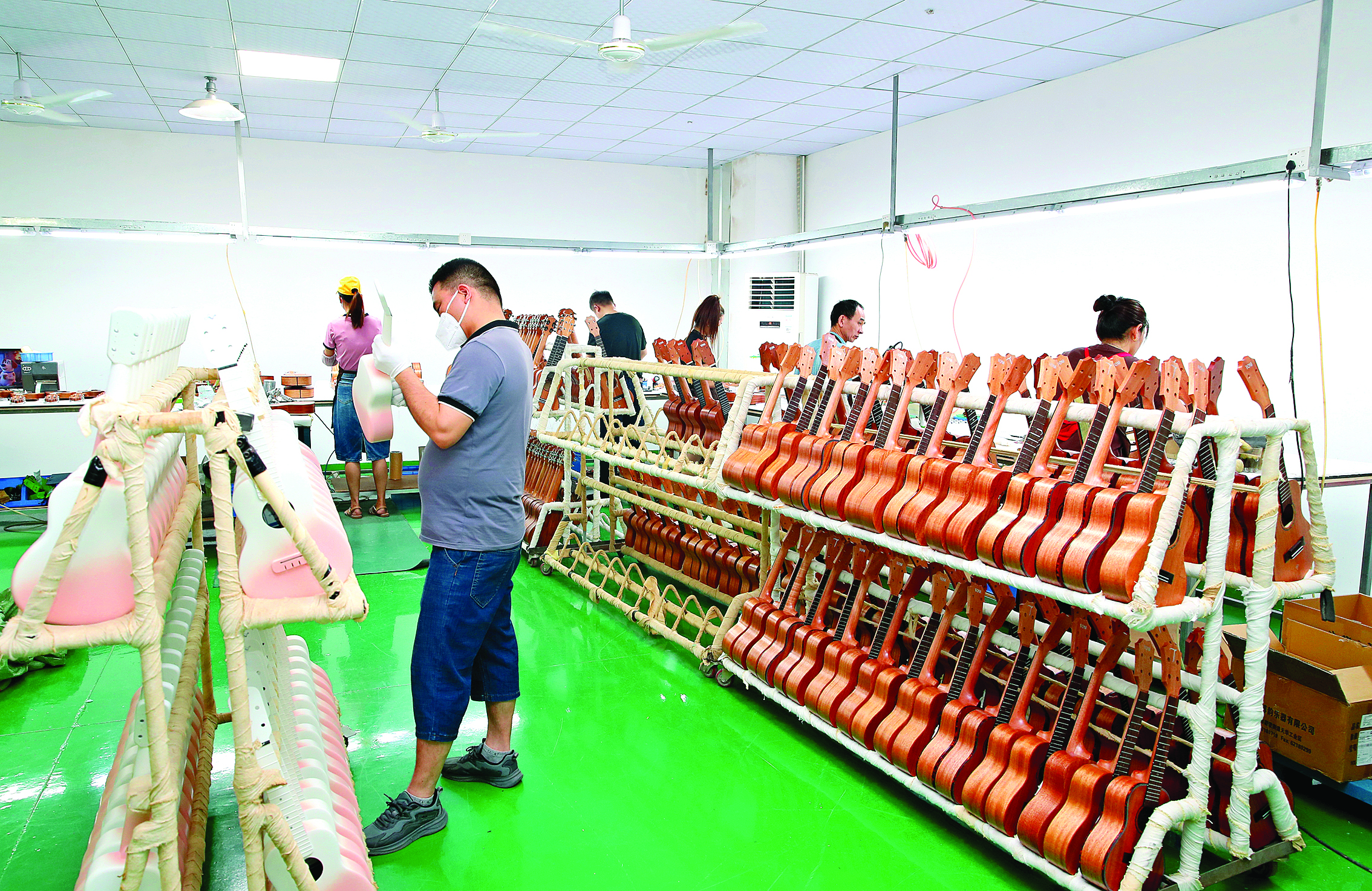 上世紀90年代,中國臺商帶來的吉他產(chǎn)業(yè)在惠陽成長壯大,最高峰時出產(chǎn)全國2/5、全球1/5的吉他,尤克里里銷售更是占全球80%,形成了從原材料供給、半成品、電子五金配件、吉他裝飾包裝、吉他數(shù)控機械等一系列完整的產(chǎn)業(yè)鏈。