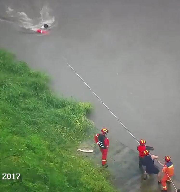 “到達(dá)現(xiàn)場(chǎng)時(shí),心一下子提到了嗓子眼。”看到漂在河面的女子,參與救援的隊(duì)員回憶道。12時(shí)09分,救援隊(duì)伍抵達(dá)現(xiàn)場(chǎng),通過(guò)肉眼觀察和街道指揮中心 “高空鷹眼” 實(shí)時(shí)監(jiān)測(cè)發(fā)現(xiàn),落水者已被湍急的河水沖到河中央,在洪水中漂浮。持續(xù)的強(qiáng)降雨讓淡水河流水位暴漲,水流速度極快。更令人揪心的是,落水者似乎已意識(shí)模糊,隨時(shí)可能被河水沖走,情況萬(wàn)分危急。