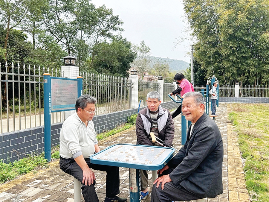 羅坑村大陂村民小組老年人在康樂園下棋聊天。 惠州日?qǐng)?bào)記者黃宇翔 通訊員龍融心 攝