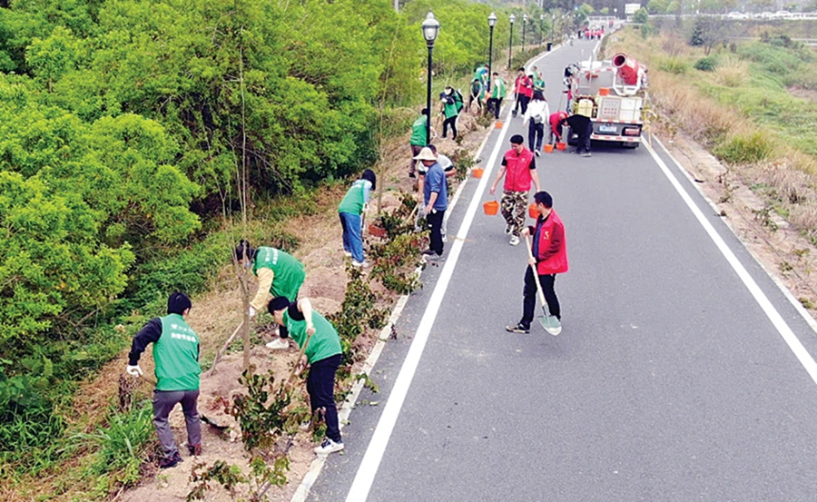 參加活動的干部群眾扶苗、培土、澆水,沿著5公里濱江碧道種下一棵棵樹苗、栽下行行新綠。“植樹雖然很累,但是心里非常充實,也感受到了大自然需要大家去愛護。”活動中,與家長一同參加活動的小志愿者黃嘉懿在種下一棵小樹苗后開心地說。據了解,本次活動吸引了近200名干部群眾參加,大家齊心種下紫花風鈴木、小葉紫薇、大腹木棉、鳳凰木等樹苗超1500株。