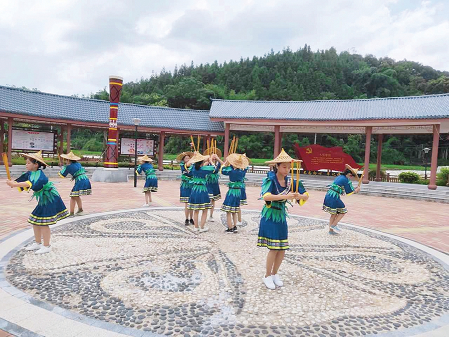 龍門縣藍田民族中學的學生表演傳統舞蹈“舞火狗”。惠州日報記者姜勁宇 通訊員黃玉平攝
