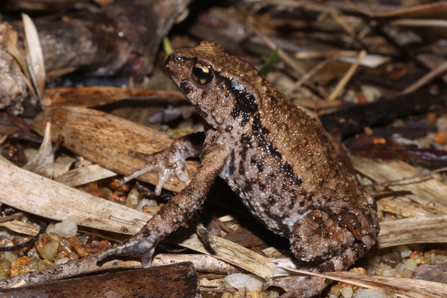 “這種蟾蜍曾經被記錄為隱耳溪蟾,這次我們通過分子生物學和形態學上的差異將這個物種描述為一新種。”中山大學高級工程師王英永介紹,本次發現的廣東溪蟾體型較小巧,成年雄性體長43.2–43.3mm,成年雌性體長48.5–52.4mm,與哀牢溪蟾并列蟾蜍屬已知最小物種,也因體型嬌小這個特征,該種的種加詞被取為“exiguus”,意為“小的”。除此之外,廣東溪蟾還具有以下特征:鼓膜隱蔽;耳后腺小,呈橄欖形;不具附褶;體背具淺色脊紋;繁殖期雄性第I、第Ⅱ指背側及內側具白色顆粒狀婚刺等形態學特點,可區別于同屬其他物種。