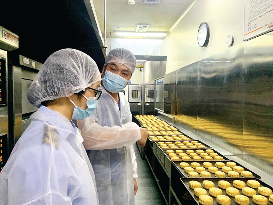 近日,記者走進永香餅家的月餅生產車間看到,工人們在各自的崗位上忙碌著:選料、揉搓、包餡、壓餅……濃濃的餅香讓人垂涎。月餅制作師傅告訴記者,店里最暢銷的月餅是伍仁叉燒月餅,這也是他們店的特色產品,使用傳統手工制作的月餅柔軟可口、味道純正,是不少永漢本地人的最愛。