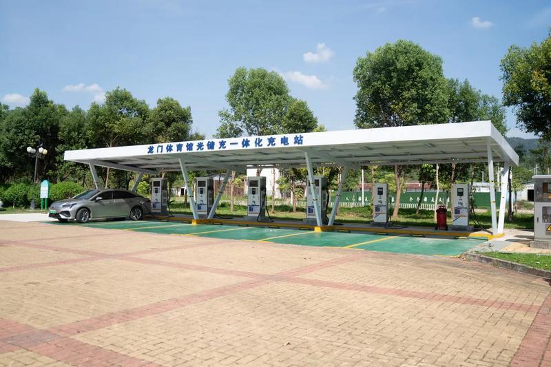位于龍門體育館的“光儲充”一體化充電站。惠州日報記者湯渝杭 攝