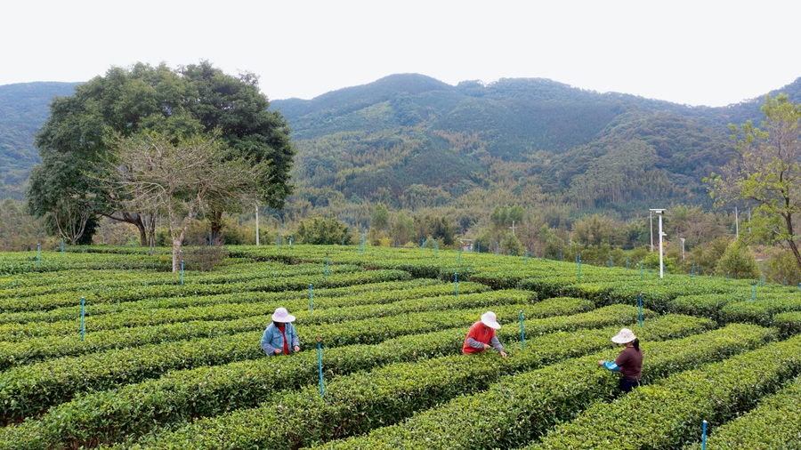 陳洞村茶園里,工人們穿梭在茶壟間采茶。惠州日報記者湯渝杭 攝