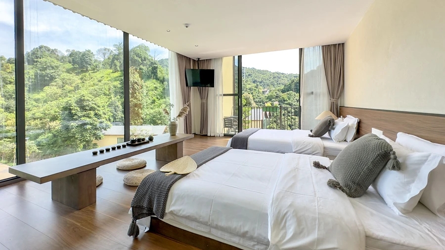 “我們重點打造山谷親子游新體驗。”緣喜樂營地民宿總店長李明勇介紹,民宿總占地面積50畝,主體由3棟各具特色的建筑組成,戶外公共休閑區配有一個游泳池、一個露天湯泉池和一個兒童泳池;室外草坪上配備兩個大型天幕可同時容納近50人開展戶外集體活動。“尤其是坐落于生態湖邊的精致湖景獨棟小別墅,頗受追求山林靜謐體驗的游客青睞。”李明勇說,民宿開業以來,每月入住率都保持在60%以上。目前,到店游客以廣州、深圳、佛山等地居多,得益于南昆山文旅品牌以及互聯網平臺的宣傳推廣,大部分游客都是從網上了解到相關信息后慕名前來。