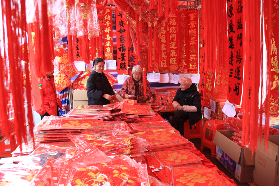 記者日前在龍門縣城谷行街、中心市場等地看到,瓜子、糖果、海味、對聯……商鋪都把節慶商品擺上貨架,不少顧客正在選購?h城年味最濃的地方,莫過于谷行街。谷行街自古以來都是龍門縣城最繁榮的商貿交易街道,走進谷行街,濃濃年味撲面而來:對聯、年畫、中國結、紅燈籠、糖果、餅干、瓜子、花生……各種年貨商品琳瑯滿目、應有盡有。來來往往的人們手上拎著大包小包,臉上洋溢著過年的喜悅。