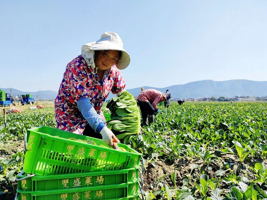 “我從貴州到這里有一段時間了。現在熟練了之后,一天能采摘200多斤菜心,工資多勞多得。”種植基地內,來自貴州的菜農小阿妹熟練地割下菜心,整齊地碼放在臂彎里,不一會就采摘了滿滿一筐。像小阿妹這樣的菜農,在這個基地里還有很多。由于村里的年輕勞動力不足,近年來,蔬菜基地吸引了貴州等地不少菜農前來務工。